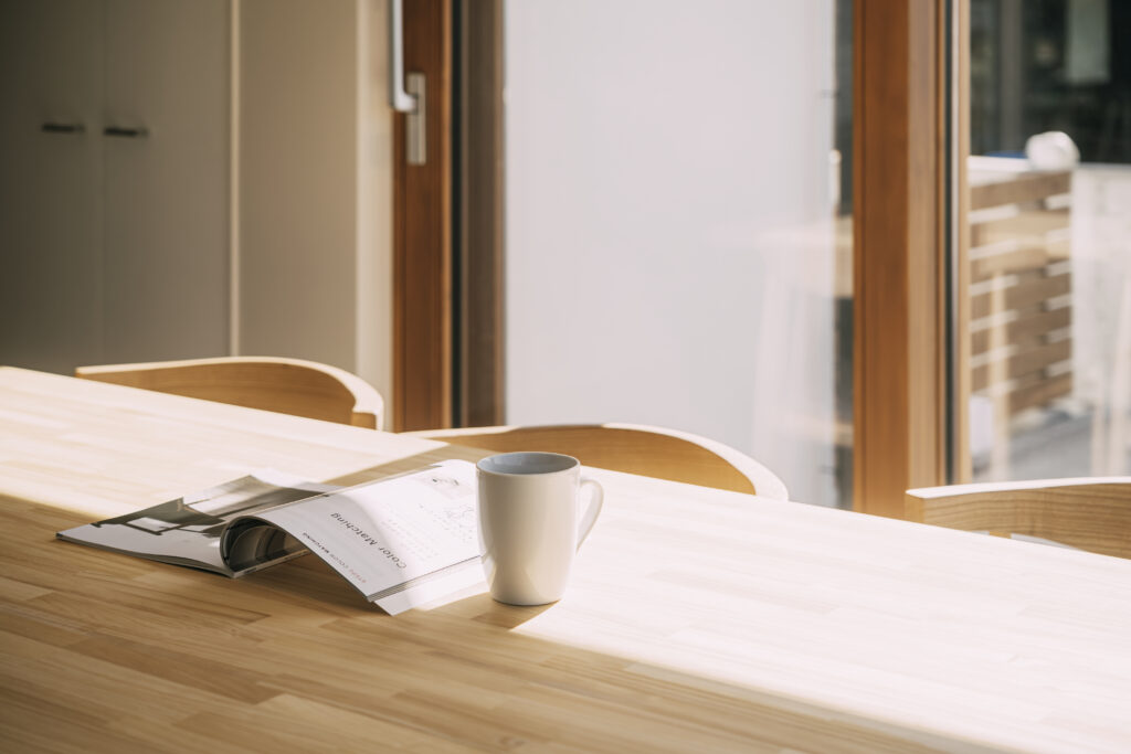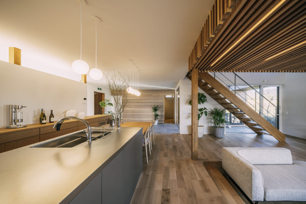 国内最高水準・断熱等級7を誇るこのモデルハウスは、外の冷気を寄せつけず、室内の熱を逃がさない建築士による設計と大工の高い施工技術によって実現しました。全館空調と高気密・高断熱の融合が、冬の信州にふさわしい上質なぬくもりをつくり出します。