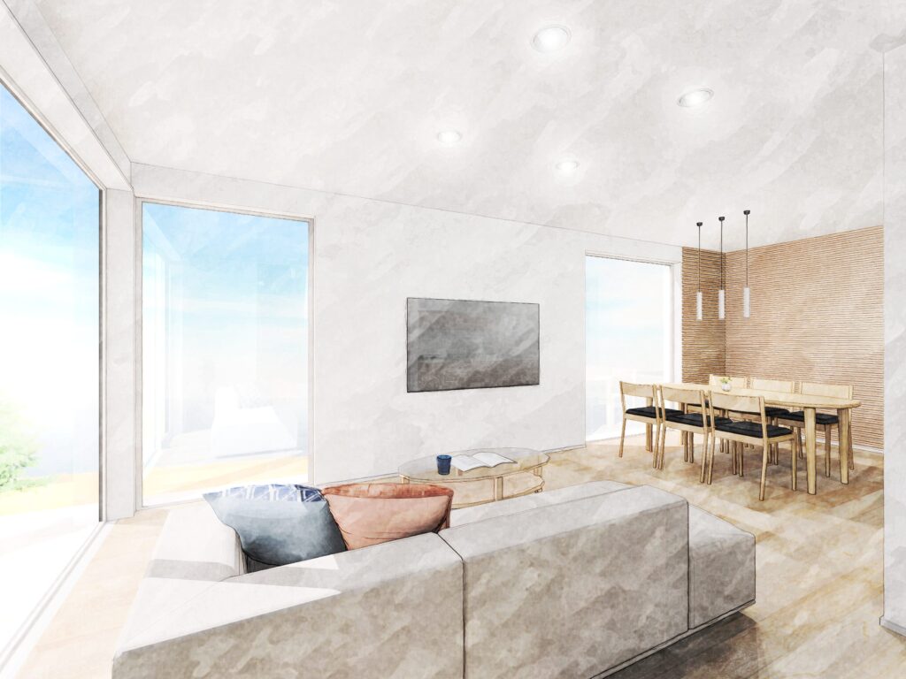 こだわりの高断熱・高気密の設計により、寒い冬でも室温差なくどこにいてもあたたかい室内空間を維持します。料理を楽しむ時間も、テラスやLDKでくつろぐ時間も、洗面室などの水回りまで、寒さや足元の冷たさを感じることなく、一年を通して快適に過ごせます。